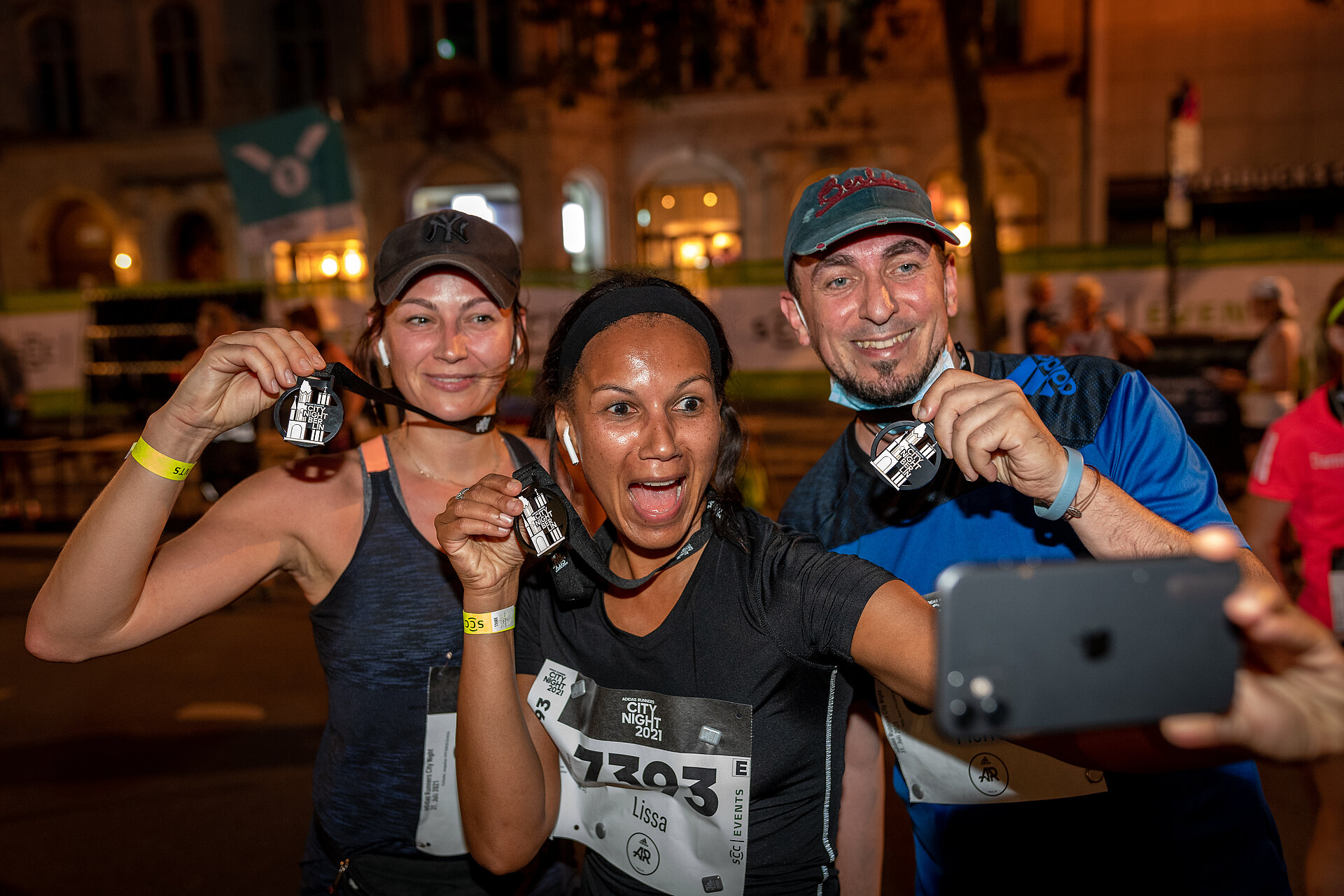 The first glow-in-the-dark medal is not only perfect for adidas Runners City Night, it also lends itself to the perfect finisher selfie. Whether solo or with other night runners, whether with the church or the asphalt of the Ku'Damm in the background, this is a very special photo that should quickly be shared with the enthusiastic running community.