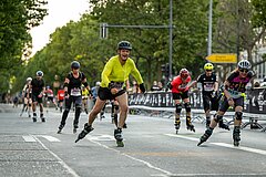 Just past the halfway point, another rapid U-turn approaches, and the course leads back to Adenauer Platz on the southern lane of the grand boulevard. The next detour along Brandenburgische Strasse ends just before Fehrbelliner Platz, where you make a final U-turn. After you have passed Adenauer Platz for the fourth time, you will have plenty of time to celebrate your personal euphoric finish down the middle of the glowing gate at the Memorial Church during the last 1.7 km. Feel the running and skating community celebrate you. You are a star!